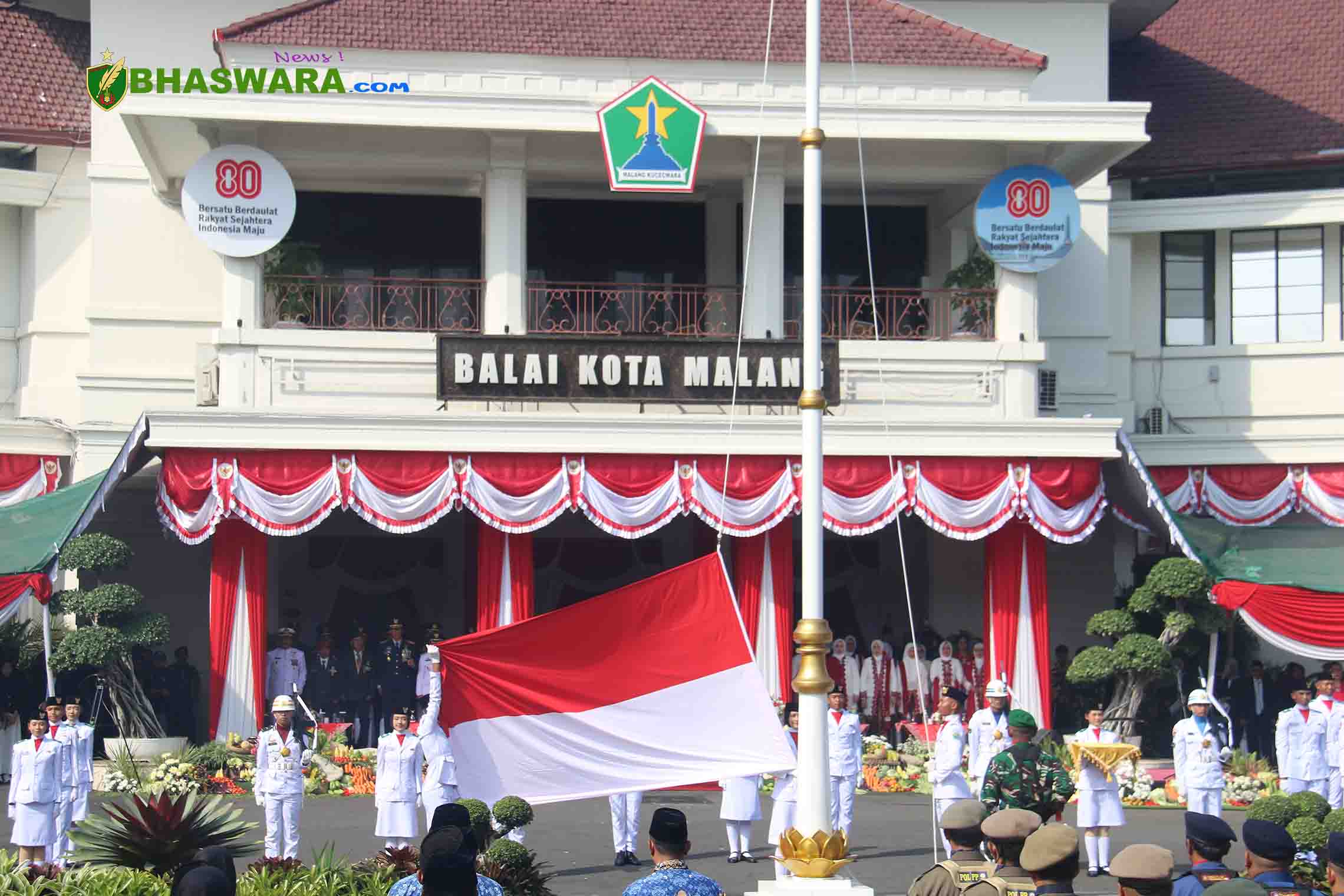 KOMANDAN RINDAM V/BRAWIJAYA HADIRI UPACARA PERINGATAN HUT KE-80 PROKLAMASI KEMERDEKAAN RI DI BALAI KOTA MALANG